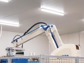 アイスクリーム他の製造工場にて、パレタイザーロボットの導入を行いました。